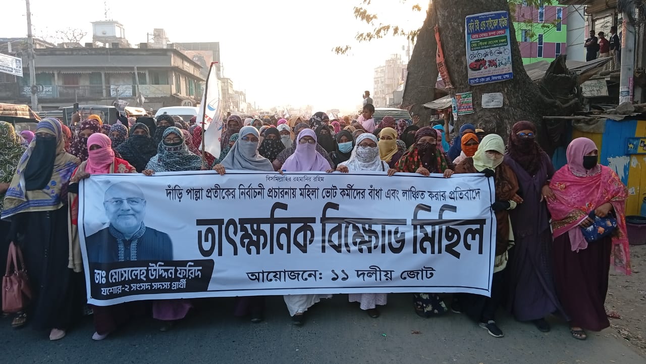 ঝিকরগাছায় জামায়াতের মহিলা কর্মীদের উপরে হামলার প্রতিবাদে বিক্ষোভ মিছিল