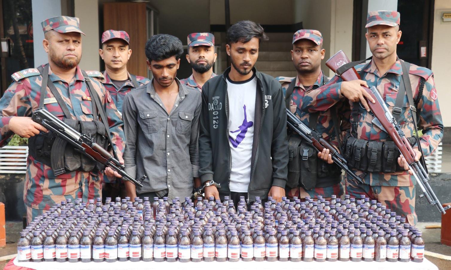 যশোরে বিজিবির অভিযানে ৩৯৭ বোতল ভারতীয় কফ সিরাপসহ দুই পাচারকারী আটক