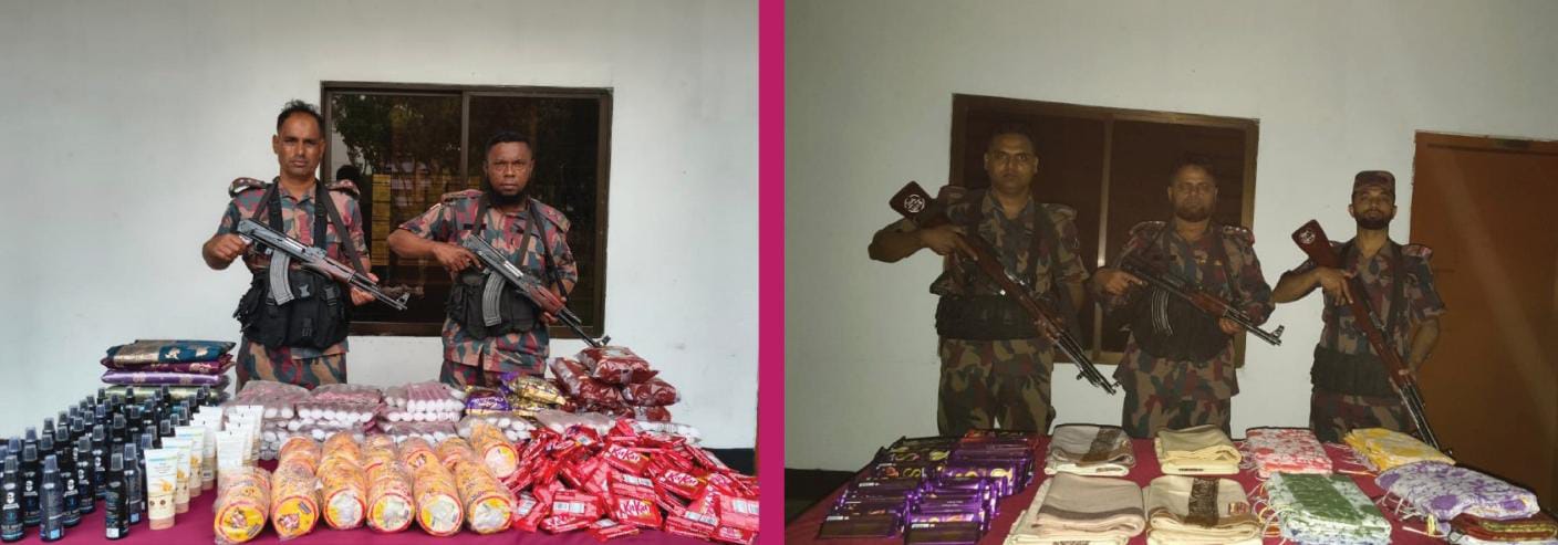 সীমান্তে বিজিবির অভিযানে বিভিন্ন ধরনের বিপুল পরিমাণ চোরাচালান মালামাল আটক