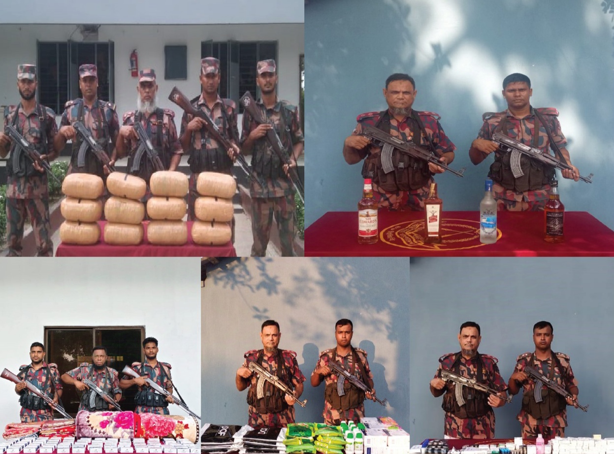 বেনাপোল সীমান্তে বিজিবির অভিযানে ২৫ কেজি গাঁজাসহ অবৈধ মালামাল জব্দ