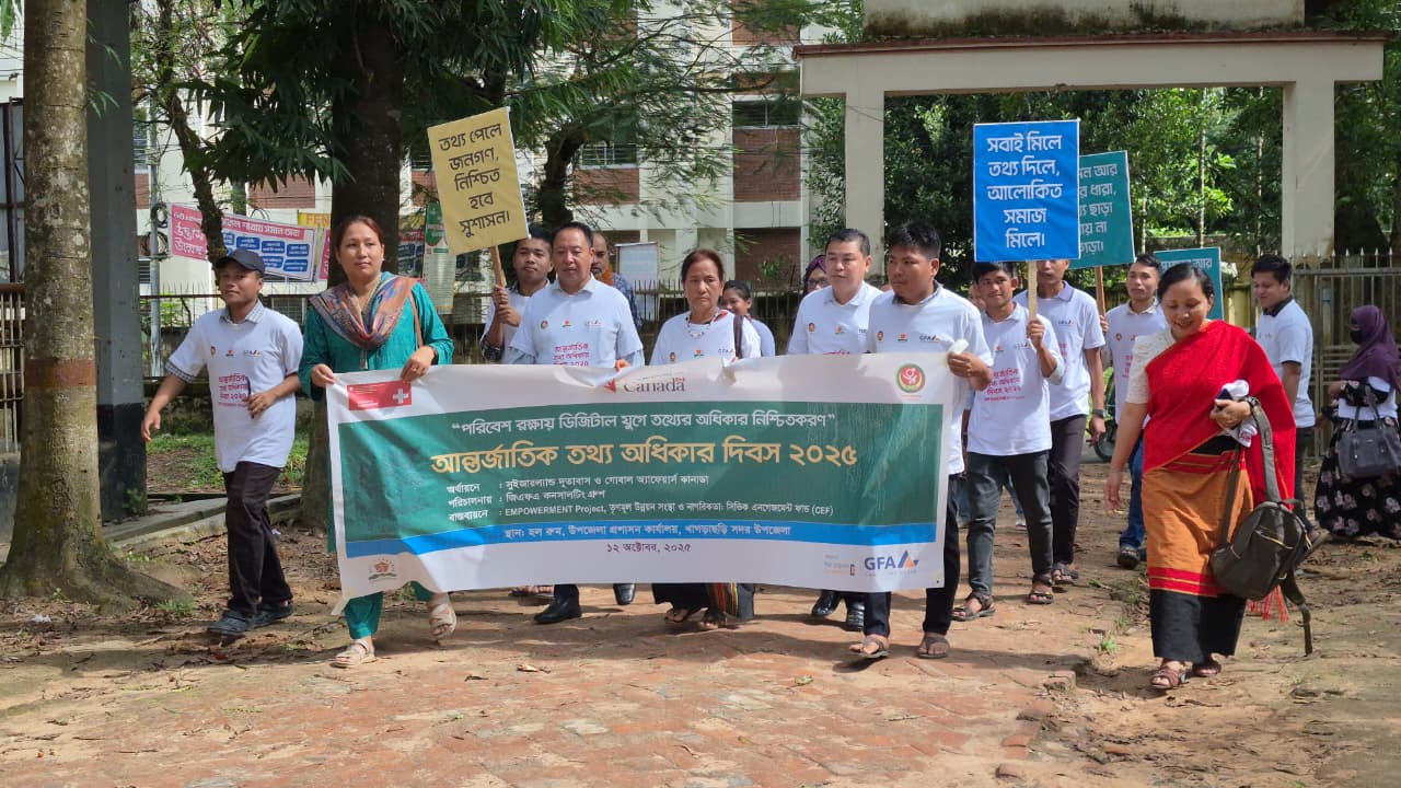“পরিবেশ রক্ষায় ডিজিটাল যুগে তথ্যের অধিকার নিশ্চিতকরণ”— এই প্রতিপাদ্যকে সামনে রেখে খাগড়াছড়িতে উদযাপিত হয়েছে আন্তর্জাতিক তথ্য অধিকার দিবস-২০২৫।