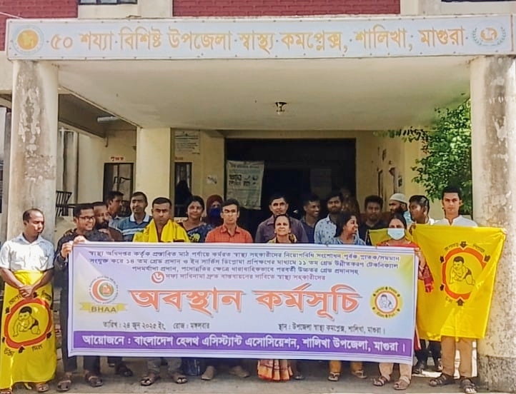বাংলাদেশ হেলথ এসিস্ট্যান্ট এসোসিয়েশনের ব্যানারে এ কর্মসূচি পালন করা হয়। তাদের অন্য দাবির মধ্যে রয়েছে, পদন্নোতি সহকারী স্বাস্থ্য পরিদর্শককে প্রশিক্ষণ ছাড়াই স্নাতক স্কেলে পুনঃনির্ধারণের সময় প্রাপ্ত টাইম স্কেল বা উচ্চতর স্কেল সংযুক্ত করা এবং ইন-সার্ভিস ডিপ্লোমা প্রশিক্ষণের মাধ্যমে ১১তম গ্রেডে উন্নতিকরণ।হেলথ এসিস্ট্যান্ট এসোসিয়েশন মাগুরা জেলা শাখার সভাপতি মোঃ নজরুল ইসলাম এর সভাপতিত্বে কর্মসূচিতে বক্তব্য রাখেন, শালিখা উপজেলা হেলথ এসিস্ট্যান্ট এসোসিয়েশনের সভাপতি মোঃ বিল্লাল হোসেন, স্বাস্থ্য সহকারী তারক বিশ্বাস, তৌফিক হোসেন, তমা রানী, তানিয়া খাতুন, জামাল হোসেন প্রমূখ।