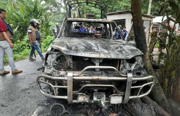 নাম প্রকাশ্যে অনিচ্ছুক স্থানীয় এক নারী বলেন, ‘সবাই মুখোশ পরে এসেছিলেন। হঠাৎ তারা পুলিশের গাড়িতে আগুন লাগিয়ে দেয়। আমরা কাছে আসতে গেলে আমাদেরও বাধা দেয়।’