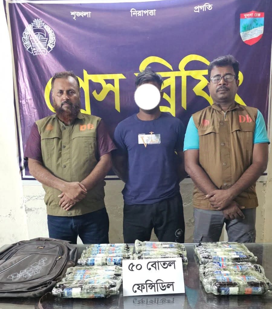 যশোরে ডিবি পুলিশের অভিযানে ৫০ বোতল ফেন্সিডিলসহ পুটখালী’র মাদক ব্যবসায়ী আটক