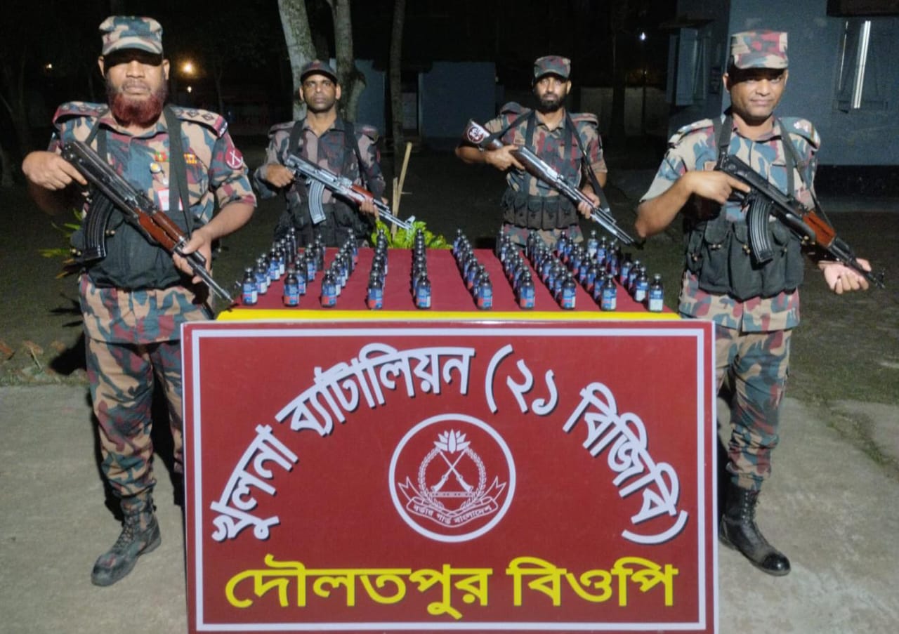দৌলতপুর সীমান্তে বিজিবি’র অভিযানে মালিকবিহীন অবস্থায় ৭৯ বোতল ফেন্সিডিল জব্দ