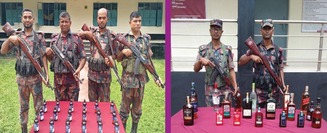 সীমান্তে বিজিবি’র অভিযানে ফেন্সিডিল ও বিদেশি মদ জব্দ