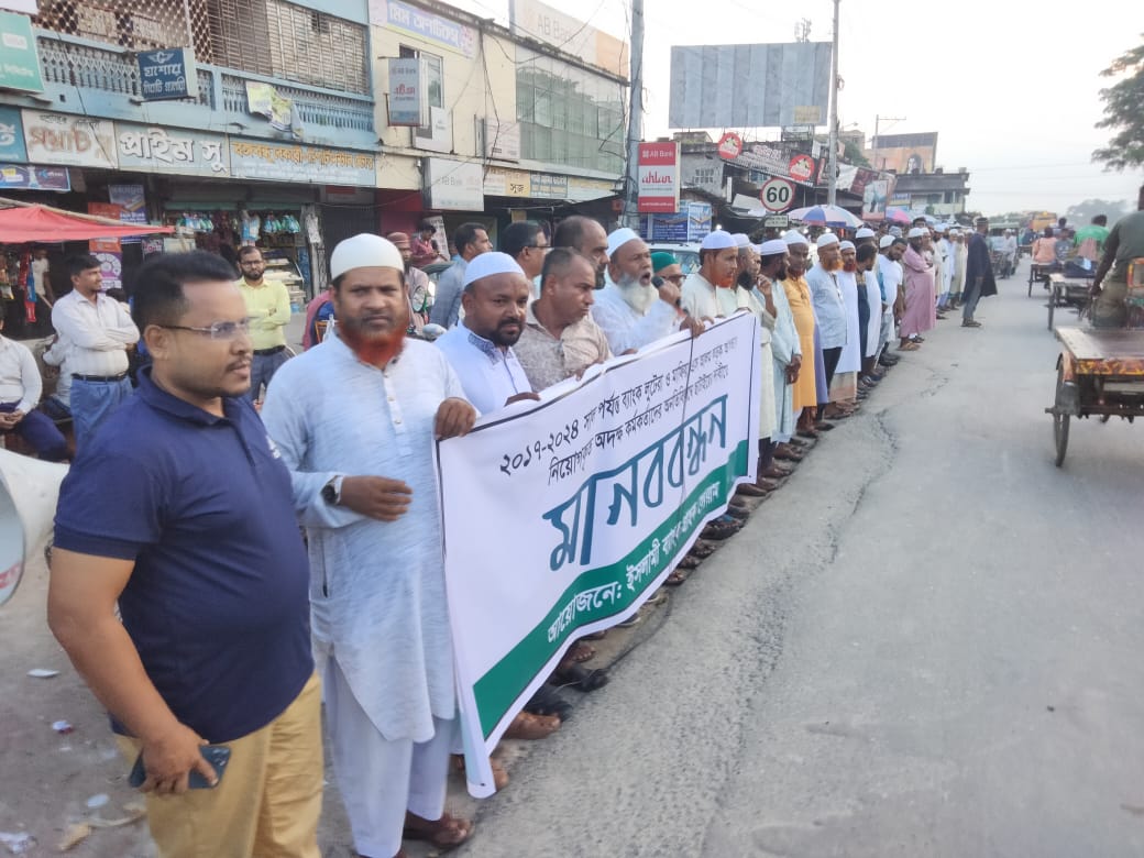 ইসলামী ব্যাংকে অবৈধ নিয়োগ বাতিলের দাবিতে ঝিকরগাছায় মানববন্ধন
