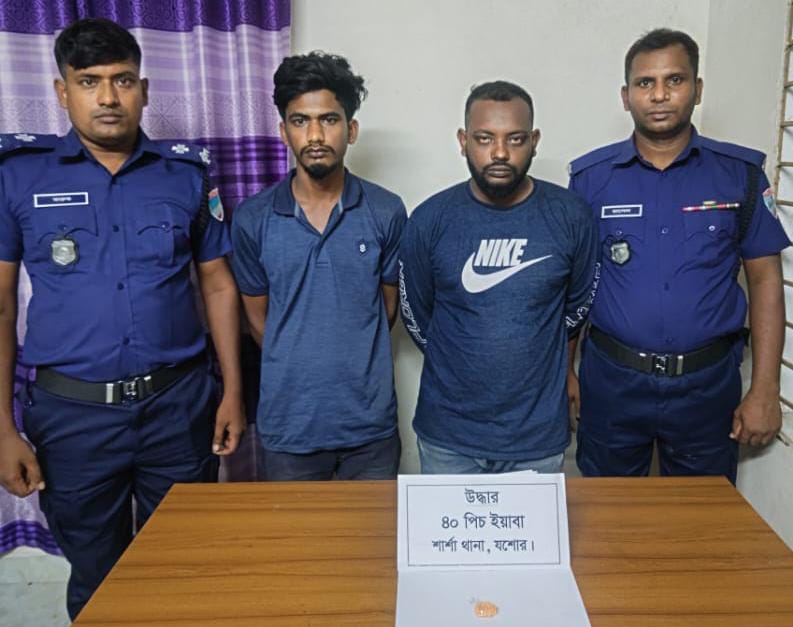 শুক্রবার (১৭ অক্টোবর-২০২৫) বিকেল ৪টা ১৫ মিনিটের দিকে শার্শা থানার রাড়ীপুকুর গ্রামে বাগআঁচড়া-কায়বা সড়কের পাশে দিলরুবা প্যালেসের সামনে থেকে তাদেরকে আটক করা হয়।