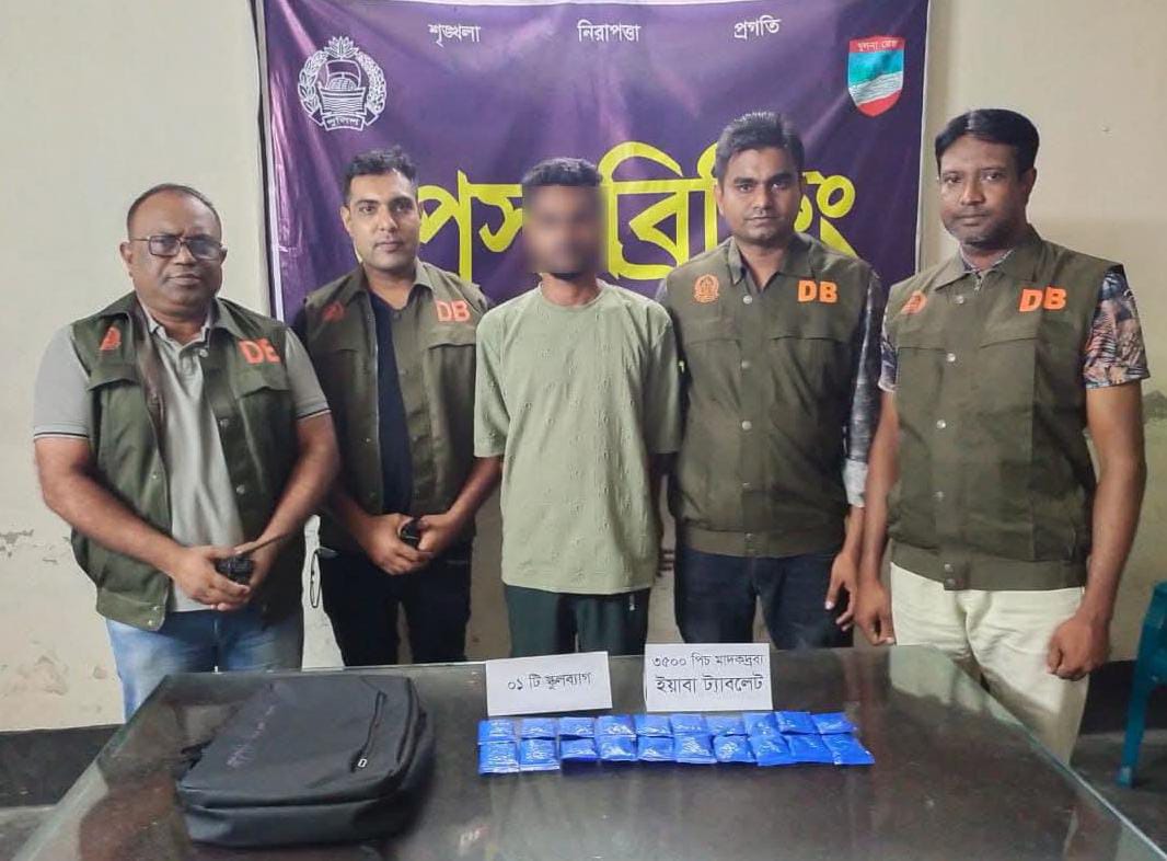যশোরে ডিবি’র অভিযানে ৩৫০০ পিস ইয়াবাসহ মাদক ব্যবসায়ী গ্রেফতার