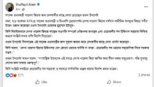 বৃহস্পতিবার বিষয়টি এক ফেসবুক পোস্টে জানিয়েছেন প্রধান উপদেষ্টার প্রেস সচিব শফিকুল আলম।