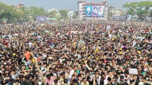 দীর্ঘ ২২ বছর পর খুলনায় গিয়ে নির্বাচনি জনসভায় যোগ দিয়েছেন বিএনপি চেয়ারম্যান তারেক রহমান