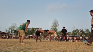 মঙ্গলবার (২১ এপ্রিল) বিকেলে সাংগ্রাই মেলা উদযাপন কমিটির উদ্যোগে অনুষ্ঠিত হয় বহুল প্রতীক্ষিত ঐতিহ্যবাহী বলী খেলা। দেশের বিভিন্ন প্রান্ত থেকে আগত প্রায় ৩০ জন খ্যাতিমান বলীর অংশগ্রহণে প্রতিযোগিতাটি ছিল অত্যন্ত প্রতিদ্বন্দ্বিতাপূর্ণ। দর্শকদের উল্লাস, করতালি আর শ্বাসরুদ্ধকর মুহূর্তের মধ্য দিয়ে অনুষ্ঠিত এই খেলায় কুমিল্লা থেকে আগত শক্তিশালী বলী রাসেল মাল অসাধারণ কৌশল, শক্তি ও ধৈর্যের প্রদর্শন করে প্রতিদ্বন্দ্বী আরেশি মারমাকে পরাজিত করে চ্যাম্পিয়ন হওয়ার গৌরব অর্জন করেন। তার এই জয়ে মাঠজুড়ে আনন্দধ্বনি ছড়িয়ে পড়ে।