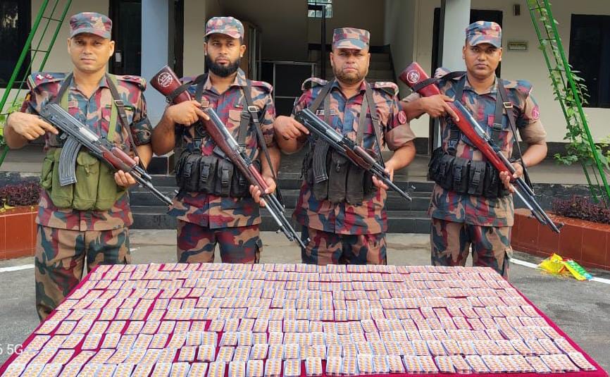 বিজিবি’র অভিযানে ৫০০০ পিস ট্যাপেন্টাডল ট্যাবলেটসহ বিভিন্ন চোরাচালানি পণ্য জব্দ