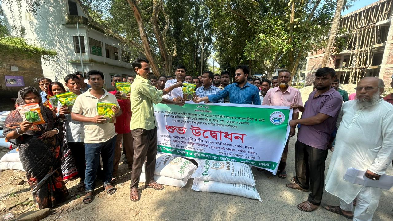 শালিখা (মাগুরা) প্রতিনিধি: ২০২৫-২৬ অর্থ বছরে ক্ষুদ্র ও প্রান্তিক কৃষকদের মাঝে প্রণোদনা কর্মসূচির আওতায় বসতবাড়িতে ও মাঠে আগাম শীতকালীন শাকসবজি