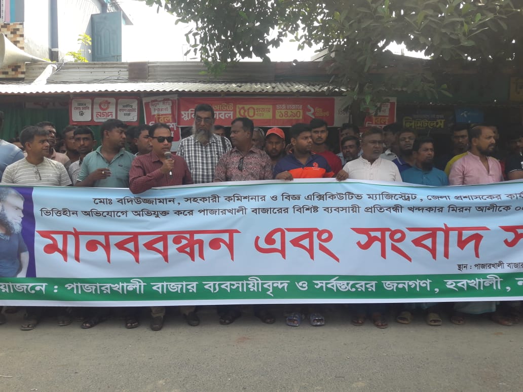স্বপন কুমার দাস,নড়াইল জেলা প্রতিনিধিঃ নড়াইল সদরের পাজারখালী বাজারের ব্যবসায়ী ও প্রতিবন্ধী খন্দকার মিরন আলীকে ৫ দিনের জেল প্রদানের প্রতিবাদে