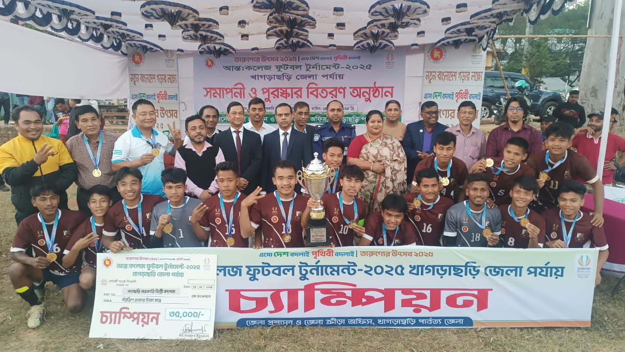 খাগড়াছড়িতে জমজমাট আন্তঃকলেজ ফুটবল ফাইনাল; টুর্নামেন্ট চ্যাম্পিয়ন পানছড়ি সরকারি ডিগ্রি কলেজ