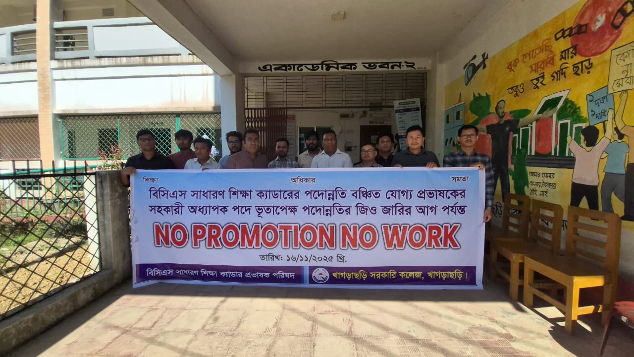 খাগড়াছড়িতে পদোন্নতি বঞ্চনার প্রতিবাদে বিসিএস সাধারণ শিক্ষা ক্যাডারের “পদোন্নতি না হলে কর্মবিরতি” কর্মসূচি পালন
