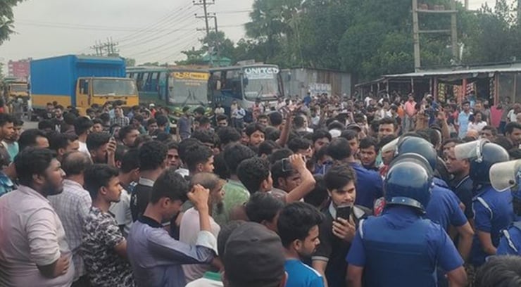 গাজীপুরে বকেয়া বেতনের দাবিতে শ্রমিকদের বিক্ষোভ, তীব্র যানজট