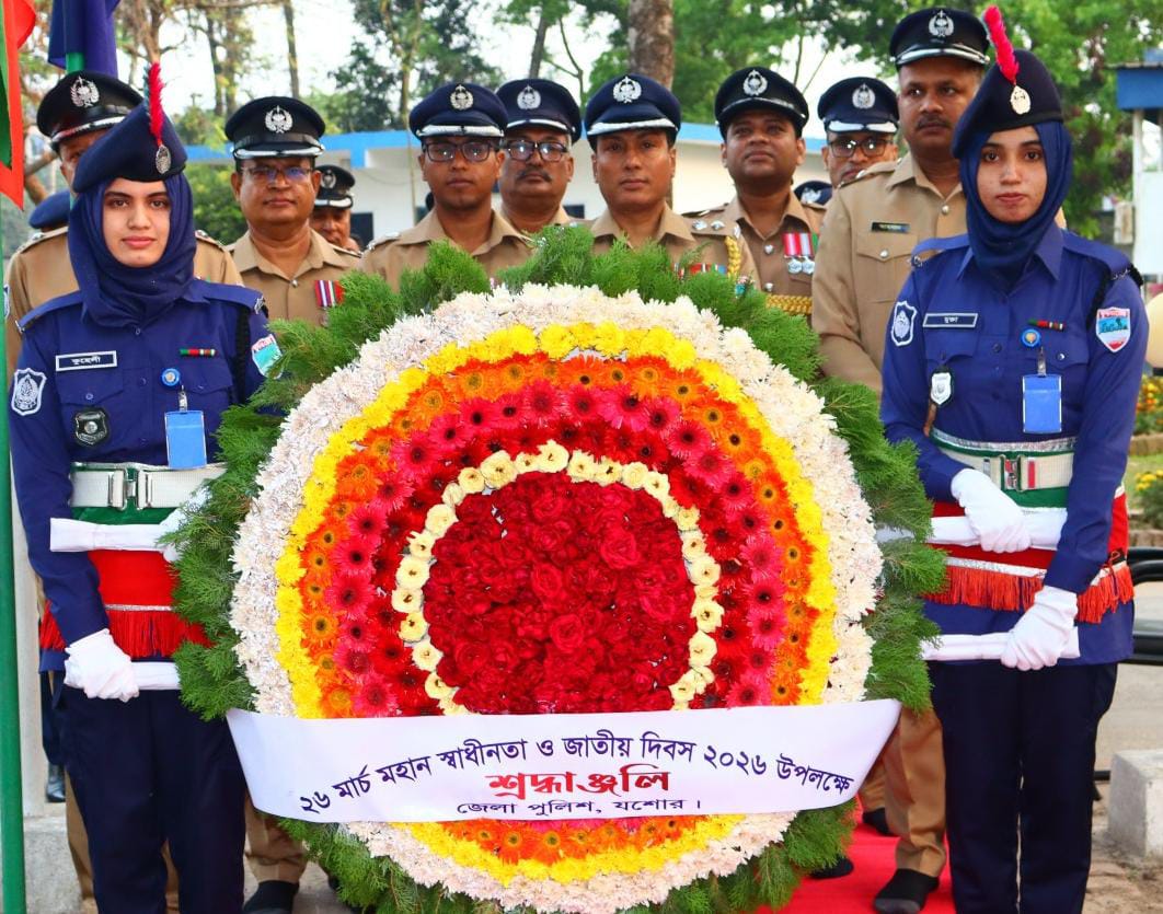 স্বাধীনতা দিবসে যশোরে শহীদদের প্রতি জেলা পুলিশের শ্রদ্ধাঞ্জলি
