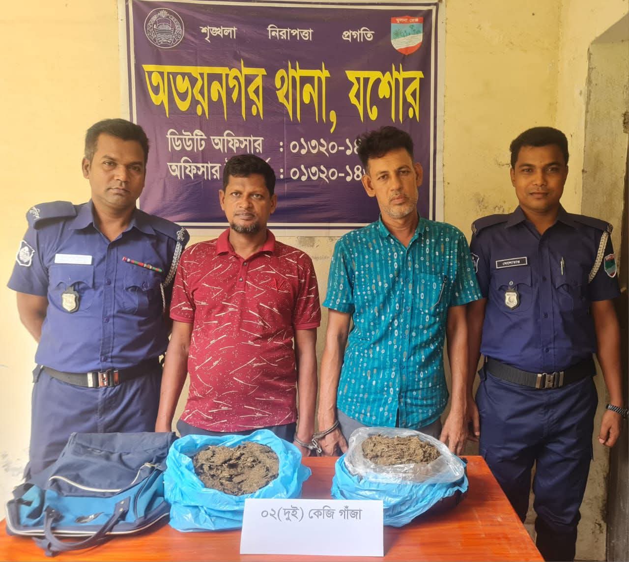 অভয়নগর থানা পুলিশের মাদক বিরোধী অভিযানে দুই কেজি গাঁজাসহ দুই মাদক ব্যবসায়ী গ্রেফতার