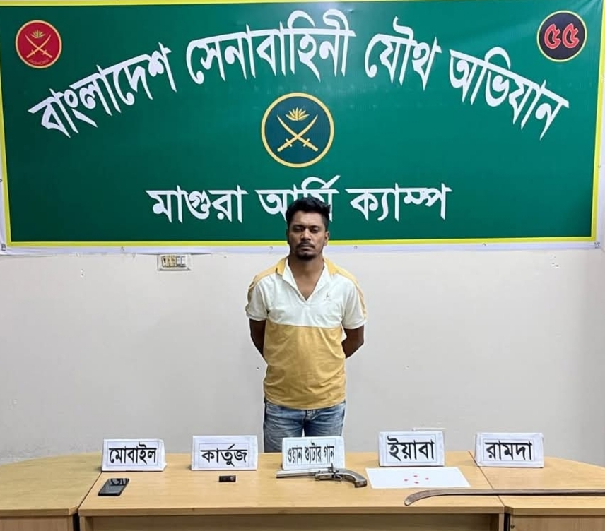 মাগুরায় যৌথবাহিনীর অভিযান: অস্ত্র ও ইয়াবা উদ্ধার।