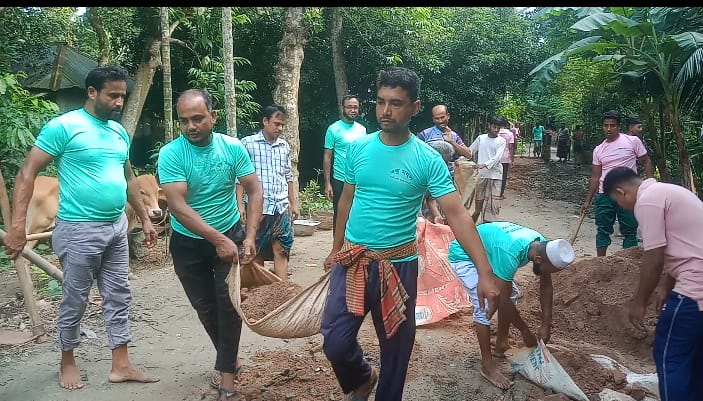 বাঘারপাড়ায় সেচ্ছাসেবী সংগঠন (বন্ধু মহল) এর উদ্যোগে রাস্তা সংস্কার