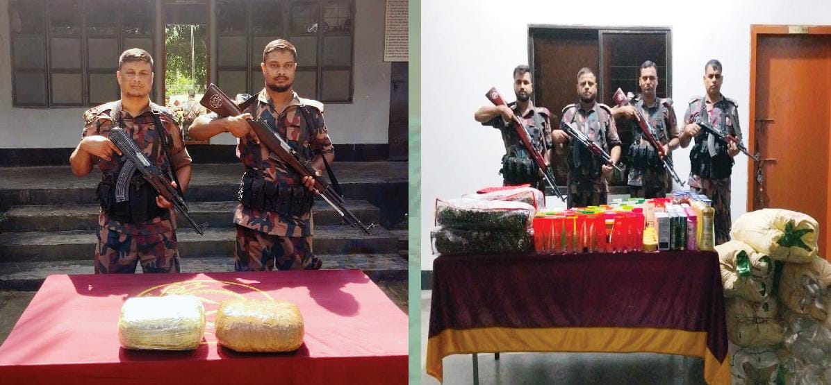 বিজিবি’র অভিযানে বেনাপোল ও রঘুনাথপুর সীমান্তে গাঁজাসহ সাড়ে ৬ লক্ষ টাকার অবৈধ মালামাল আটক