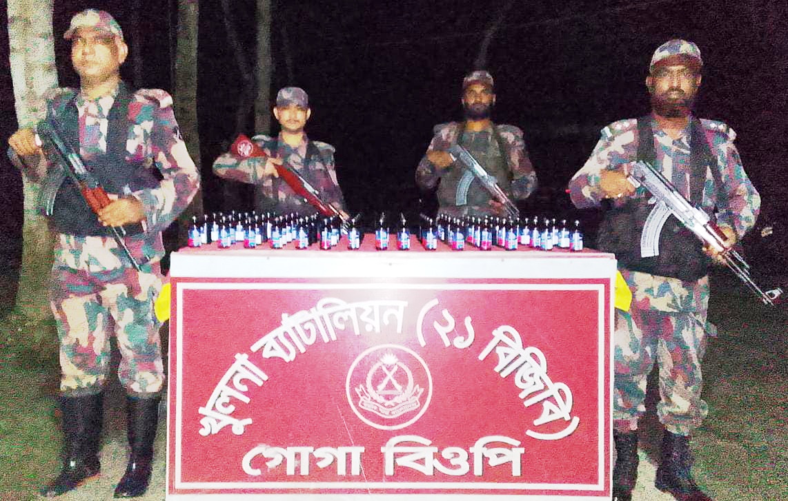শার্শার গোগা সীমান্তে বিজিবি’র অভিযানে ৭৫ বোতল ফেন্সিডিল জব্দ