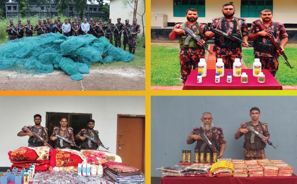 যশোর সীমান্তে বিজিবি’র কঠোর অভিযানে ২৫ লক্ষাধিক টাকার অবৈধ মালামাল জব্দ, নিষিদ্ধ জাল ধ্বংস