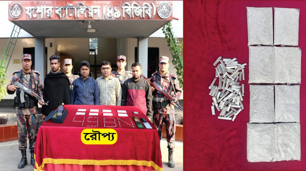 যশোরে ১০.৫ কেজি রুপা ও বিদেশি মদসহ চার পাচারকারী আটক