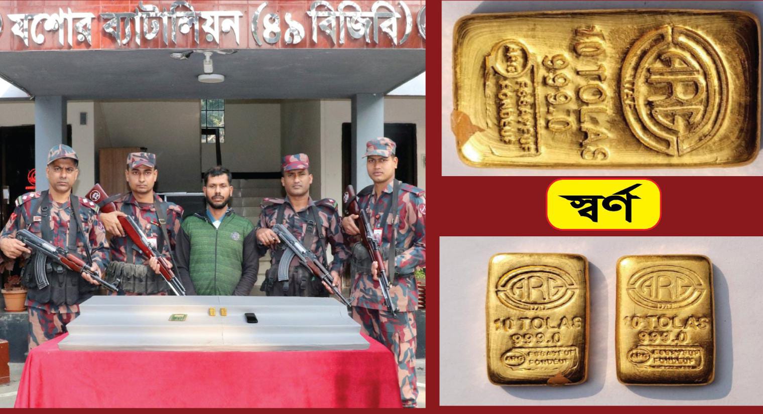 যশোরে ৫১ লাখ টাকার ২ টি স্বর্ণের বারসহ পাচারকারী আটক