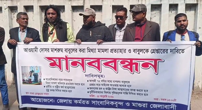 মাগুরায় সাংবাদিকের বিরুদ্ধে মিথ্যা মামলার অভিযোগে মানববন্ধন