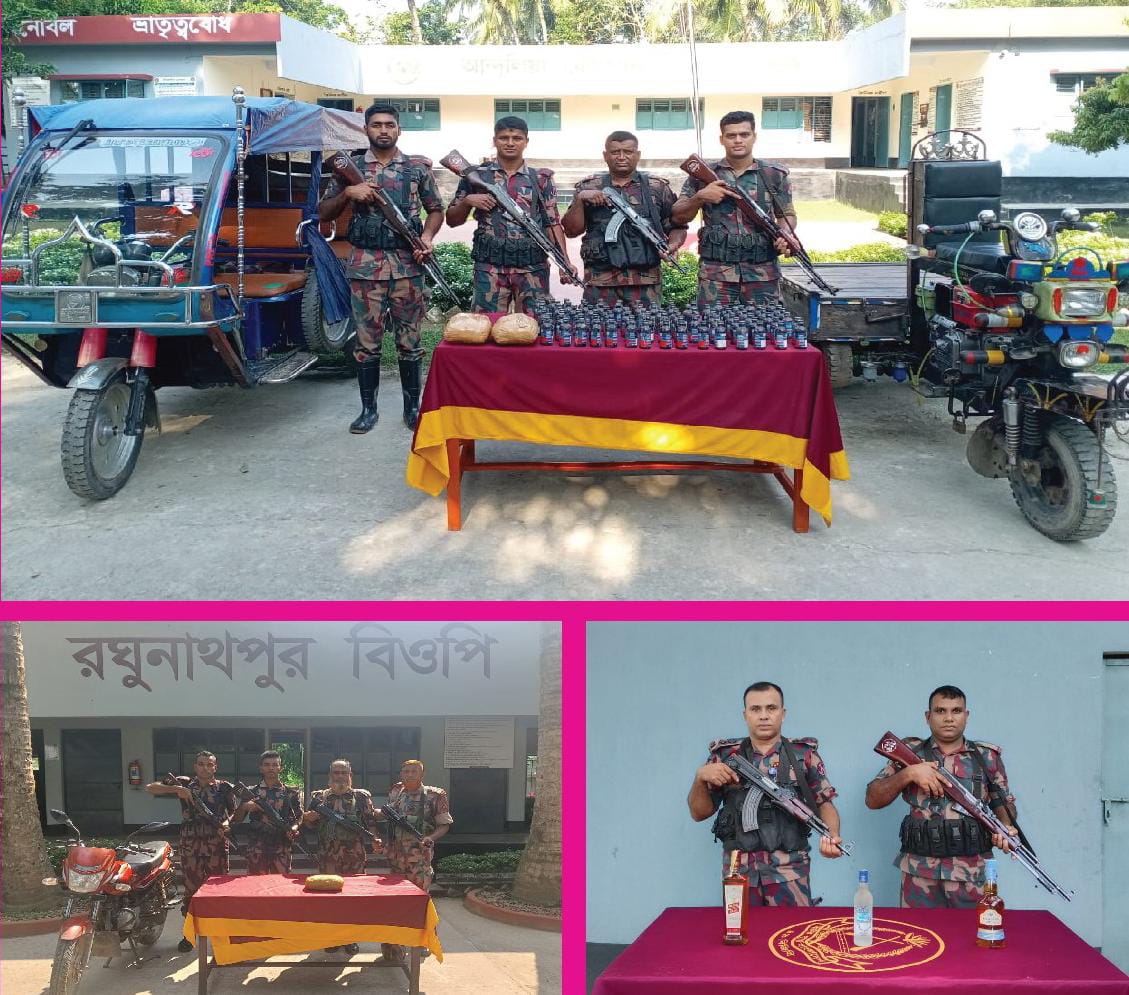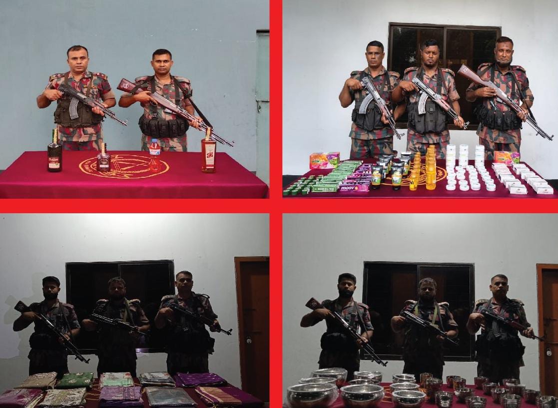 বেনাপোলে বিজিবি’র অভিযানে বিদেশি মদ, শাড়ি-থ্রি পিসসহ চোরাচালানী পণ্য জব্দ