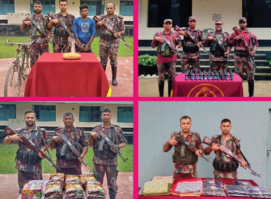 বেনাপোল ও আন্দুলিয়া সীমান্তে বিজিবি’র অভিযানে মাদকদ্রব্য ও চোরাচালান পণ্য জব্দ