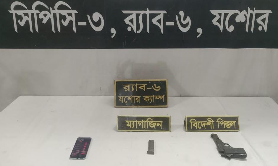 যশোরে বিদেশি পিস্তল ও ম্যাগাজিনসহ কুখ্যাত সন্ত্রাসী গ্রেফতার