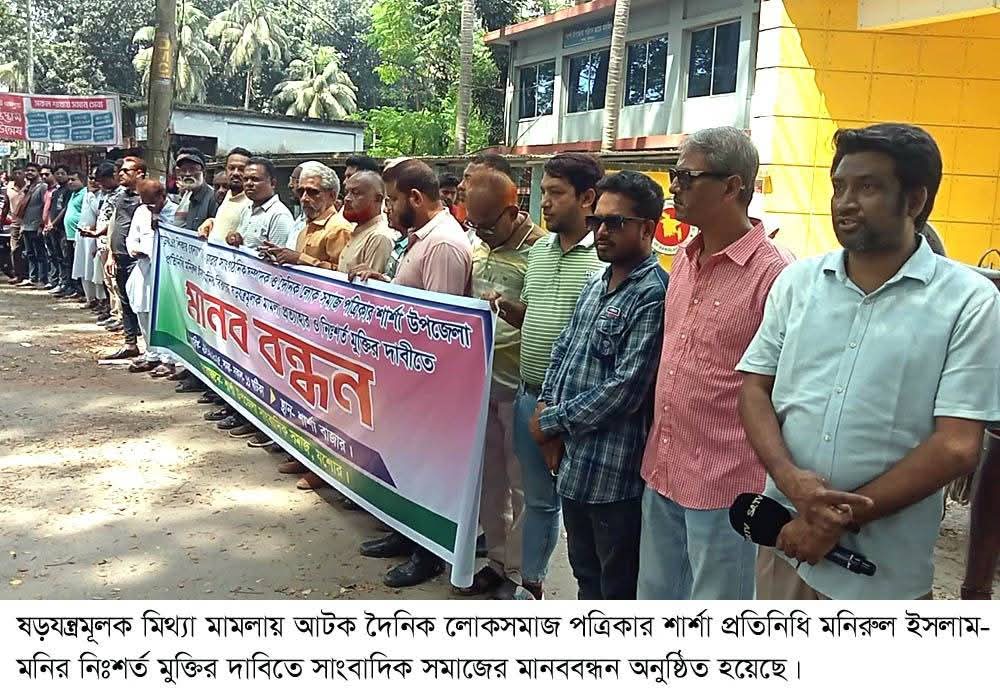 শার্শায় সাংবাদিক মনির মুক্তির দাবিতে মানববন্ধন, ওসির অপসারণ দাবি