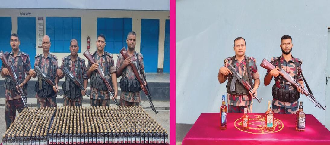 বেনাপোল-পাঁচপীরতলা সীমান্তে বিজিবি’র অভিযানে বিপুল পরিমাণে উইনসারেক্স কফ সিরাপ ও বিদেশি মদ জব্দ