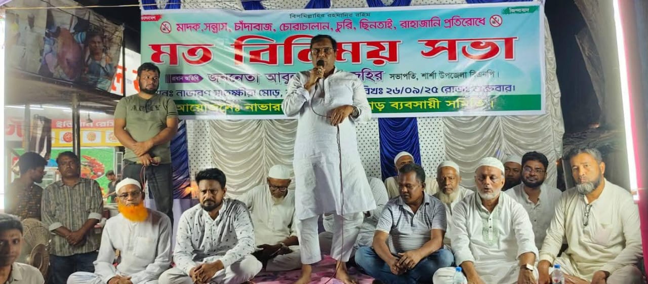 নিজস্ব প্রতিবেদক: যশোরের শার্শা উপজেলার নাভারণ সাতক্ষীরা মোড় ব্যবসায়ী সমিতির আয়োজনে শুক্রবার (২৬ সেপ্টেম্বর ২০২৫) সন্ধ্যায় এক গুরুত্বপূর্ণ মতবিনিময় সভা
