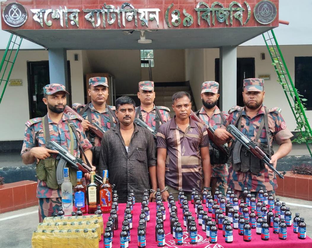 যশোরে বিজিবি’র অভিযানে বাংলাদেশ-ভারত মাদক পাচার চক্রের দুই জনসহ ১২৫ বোতল ফেন্সিডিল ও বিদেশি মদ আটক