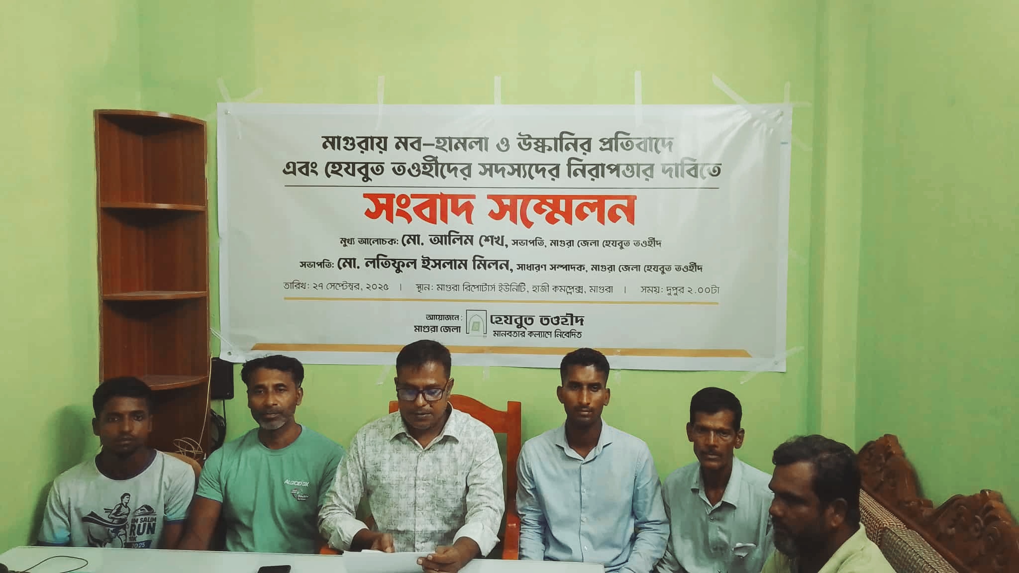 শালিখা মাগুরা প্রতিনিধিঃ মাগুরায় মব-হামলা ও উষ্কানির প্রতিবাদে এবং হেযবুত তওহীদের সদস্যদের নিরাপত্তার দাবিতে সংবাদ সম্মেলন অনুষ্ঠিত হয়। শনিবার ২৭সেপ্টেম্বর