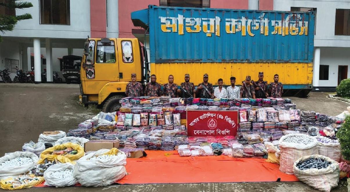 বেনাপোলে বিজিবি’র অভিযানে মাদকসহ চোরাচালানি পণ্য জব্দ
