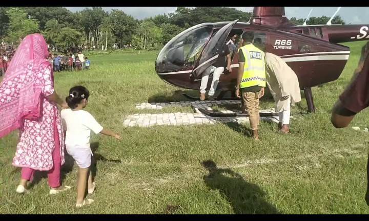 বাঘারপাড়ায় স্বপ্ন পুরনে, পিতাকে চড়ালেন হেলিকপ্টারে!