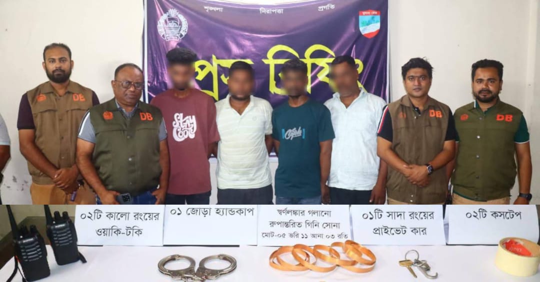 যশোরে পুলিশ পরিচয়ে স্বর্ণ ডাকাতি: ঢাকায় গ্রেফতার ৪, উদ্ধার হ্যান্ডকাপ-ওয়াকি-টকি ও লুটের স্বর্ণ