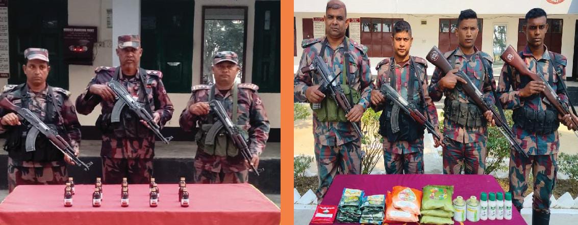 যশোর সীমান্তে বিজিবি’র অভিযানে মালিকবিহীন মাদক ও চোরাচালান পণ্য জব্দ