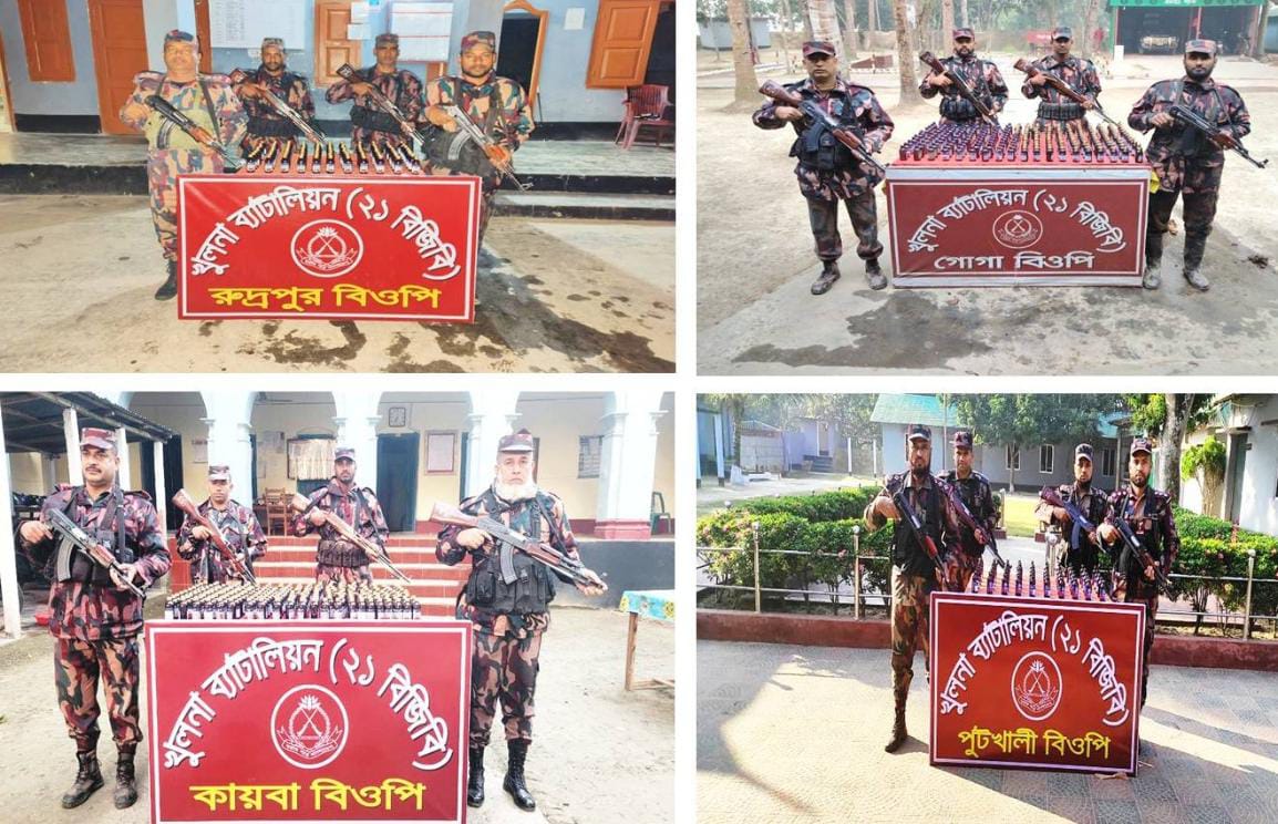 নিজস্ব প্রতিবেদক: যশোরের শার্শা সীমান্তে পৃথক অভিযানে বিপুল পরিমাণ ভারতীয় নিষিদ্ধ কাশির সিরাপ ও ফেন্সিডিল জব্দ করেছে খুলনা ব্যাটালিয়ন (২১