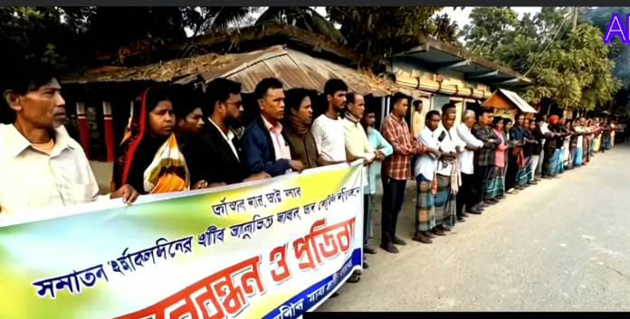 সাঈদ ইবনে হানিফ ঃ যশোরের বাঘারপাড়ায় ধর্মীয় অনুভূতিতে আঘাত ও ব্যঙ্গ-বিদ্রুপের প্রতিবাদে মানববন্ধন ও প্রতিবাদ সমাবেশ করেছেন সনাতন ধর্মের অনুসারীরা