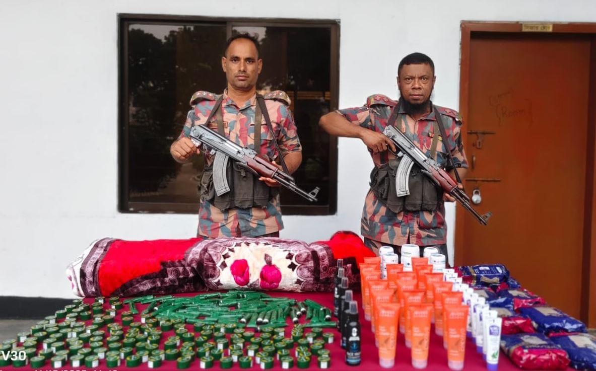 সীমান্তে বিজিবি’র অভিযানে কম্বল-জিরা ও কসমেটিকস পণ্য জব্দ