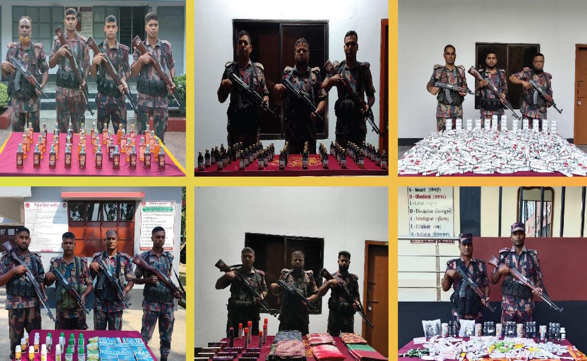 যশোর সীমান্তে বিজিবি’র সাঁড়াশি অভিযানে মাদকদ্রব্যসহ বিভিন্ন চোরাচালানি পণ্য জব্দ