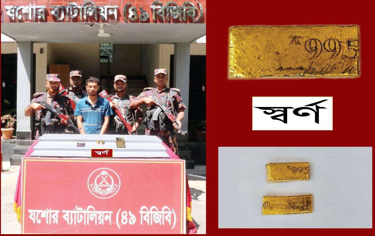 যশোরে বিজিবি’র অভিযানে ২২৫.৩১ গ্রামের ২ পিস স্বর্ণের বারসহ যুবক আটক