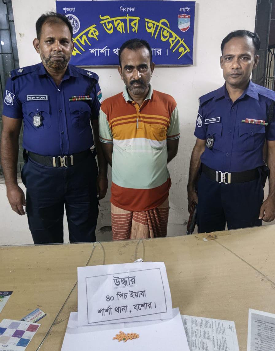 শার্শায় পুলিশের মাদকবিরোধী অভিযান: ৪০ পিস ইয়াবাসহ এক মাদক ব্যবসায়ী গ্রেফতার